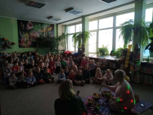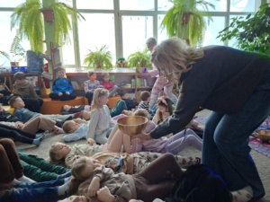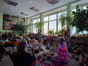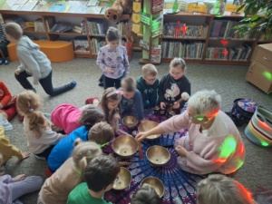 Styczniowa audycja muzyczna dla przedszkolaków to spokojne spotkanie z dźwiękiem, które pomaga dzieciom wyciszyć się i zrelaksować. Delikatne dzwonki Koshi brzmią jak muzyka natury, a ciepłe dźwięki mis tybetańskich uspokajają, rozluźniają i dają poczucie bezpieczeństwa. Dzieci słuchają muzyki w wygodnej pozycji, ucząc się uważności i wrażliwości na dźwięk w przyjaznej, spokojnej atmosferze.
