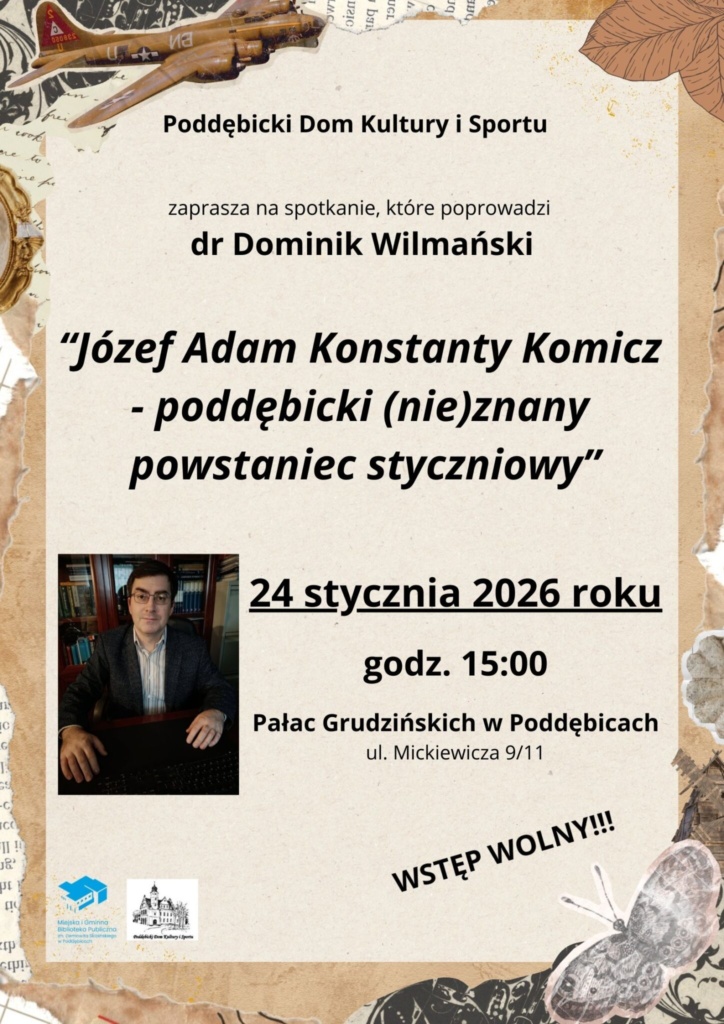 Poddębicki Dom Kultury i Sportu oraz Łódzki Dom Kultury zapraszają na spotkanie pt. „Józef Adam Konstanty Komicz – poddębicki (nie)znany powstaniec styczniowy”, które poprowadzi dr Dominik Wilmański.